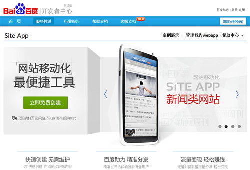 HTML5的技術(shù)門(mén)檻較高,單獨(dú)開(kāi)發(fā)會(huì)有不少難度,很多站長(zhǎng)采用移動(dòng)建站工具來(lái)生成基于HTML5的移動(dòng)網(wǎng)站。目前使用較多的移動(dòng)建站工具是百度Site App,該工具使用地址參見(jiàn)這里,百度移動(dòng)搜索會(huì)將大部分網(wǎng)站進(jìn)行轉(zhuǎn)碼,轉(zhuǎn)碼后的內(nèi)容比較適合手機(jī)移動(dòng)等小屏幕設(shè)備訪(fǎng)問(wèn),百度Site App這個(gè)工具可以支持站長(zhǎng)將自己網(wǎng)站轉(zhuǎn)碼后的頁(yè)面進(jìn)行定制,并部署到自己獨(dú)立子域名的網(wǎng)站,同時(shí)還支持通過(guò)百度聯(lián)盟的方式在網(wǎng)頁(yè)上加入針對(duì)移動(dòng)設(shè)備的專(zhuān)用廣告,以獲得廣告收益。下圖是利用百度Site App來(lái)建立的博客移動(dòng)網(wǎng)站。