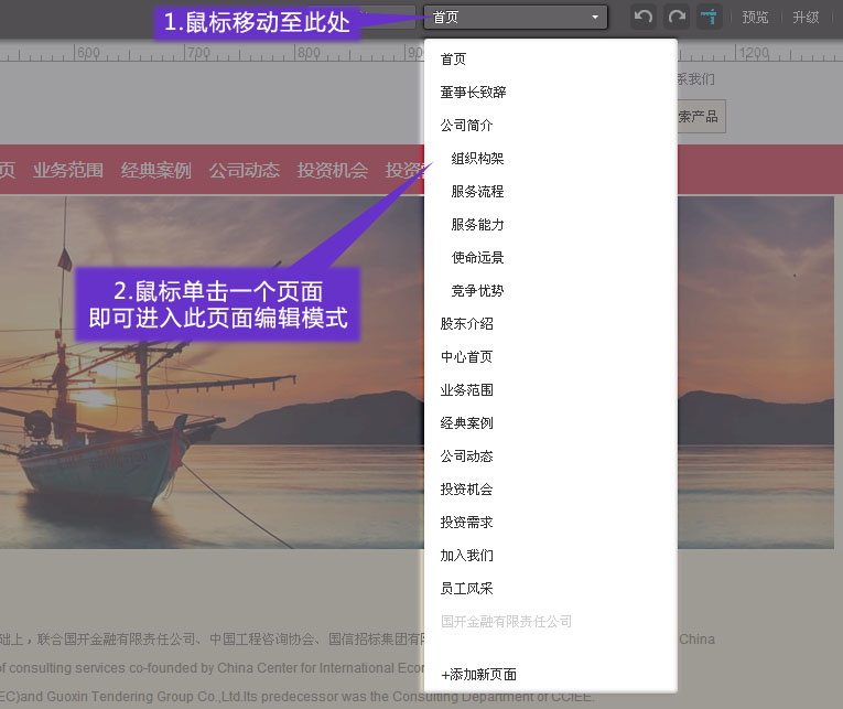 進入網(wǎng)站編輯模式,在編輯模式右上角可見頁面下拉框。