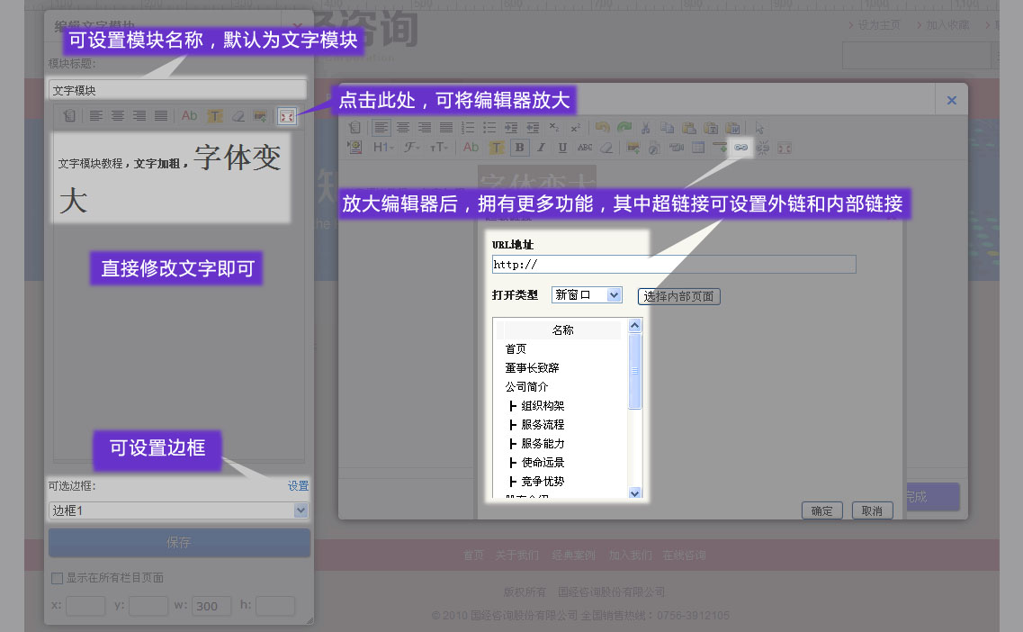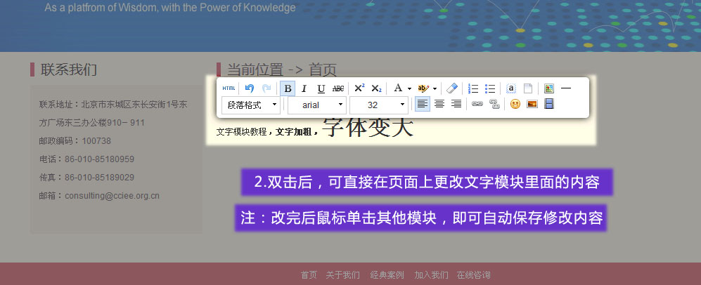 進入網(wǎng)站編輯模式,鼠標(biāo)雙擊文字模塊
