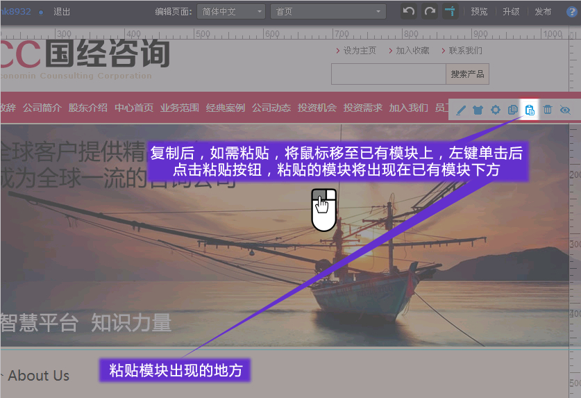 2.可以在不同頁面粘貼!(如:在首頁復(fù)制一個(gè)模塊,切換到其他頁面粘貼!)