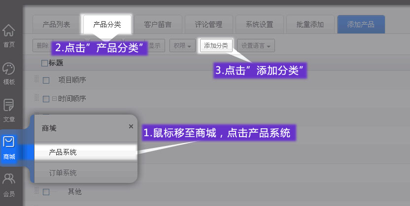 如何添加產(chǎn)品分類/如何更改產(chǎn)品分類排序