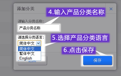 輸入好產(chǎn)品分類名稱,點擊保存