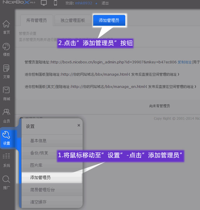 1. 進(jìn)入"設(shè)置"->“添加管理員
