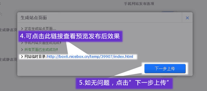 4. 填寫完成后點擊"確認(rèn)上傳",即可開始將網(wǎng)站上傳至服務(wù)器上,等待上傳完畢,即可訪問網(wǎng)站了!