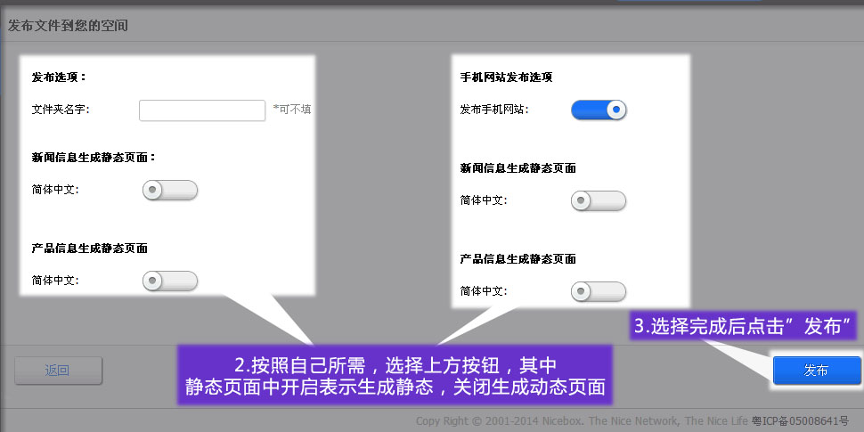 做好了網(wǎng)站怎么發(fā)布到互聯(lián)網(wǎng)上可選擇靜態(tài)/非靜態(tài)發(fā)布,部分功能靜態(tài)發(fā)布會不支持