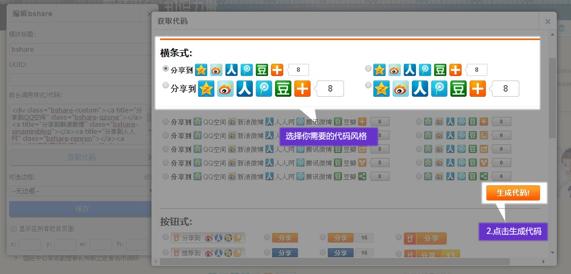 在適當?shù)奈恢,添加?b>bshare”模塊