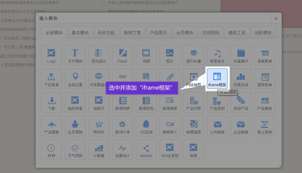 在適當(dāng)?shù)奈恢,添加?b>Iframe模塊”