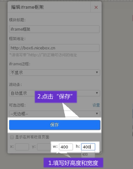 設(shè)置Iframe的W值(寬度)和H值(高度)