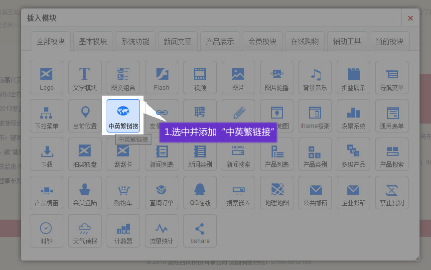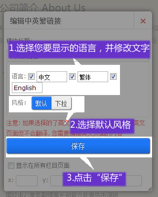 在適當(dāng)?shù)奈恢,添加?b>中英繁鏈接”模塊