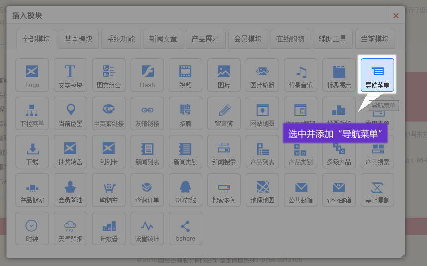 在適當(dāng)?shù)奈恢,添加?b>導(dǎo)航菜單”模塊