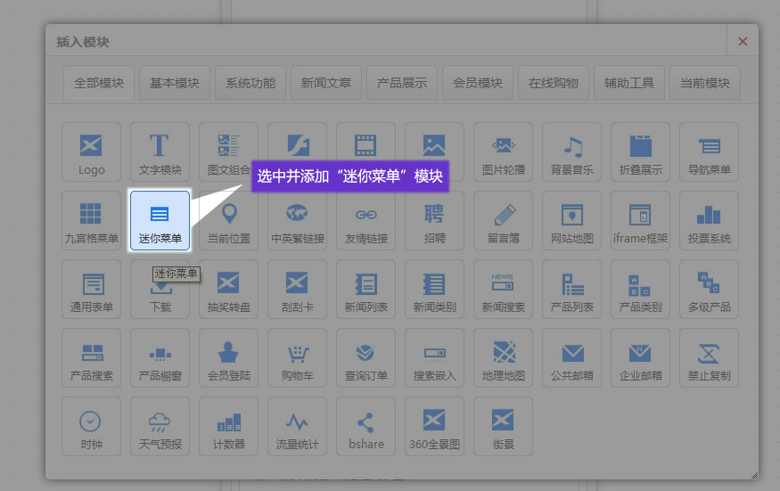 在適當(dāng)?shù)奈恢,添加?b>迷你菜單”模塊