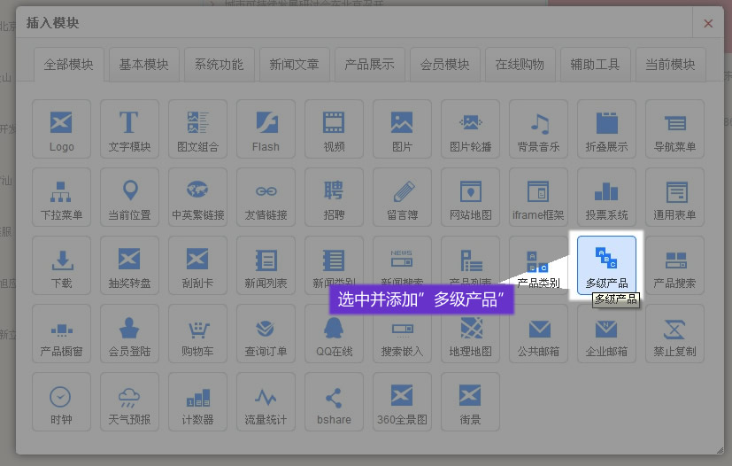 在適當(dāng)?shù)奈恢,添加?b>多級(jí)產(chǎn)品”模塊