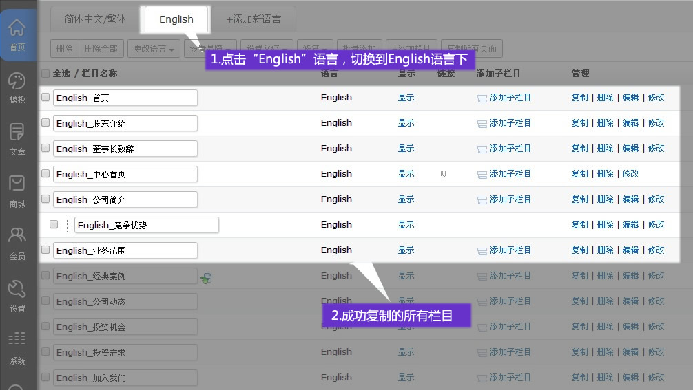 如何復(fù)制所有欄目到新建的語(yǔ)言下