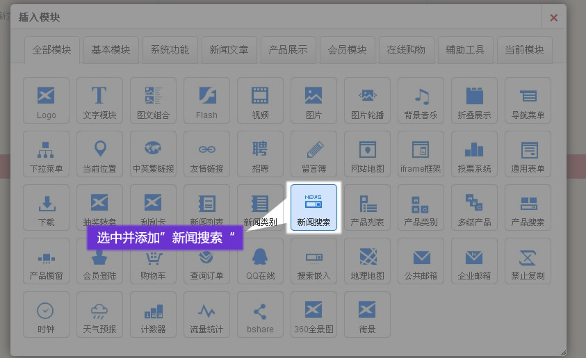 在適當(dāng)?shù)奈恢茫砑印?b>新聞搜索”模塊