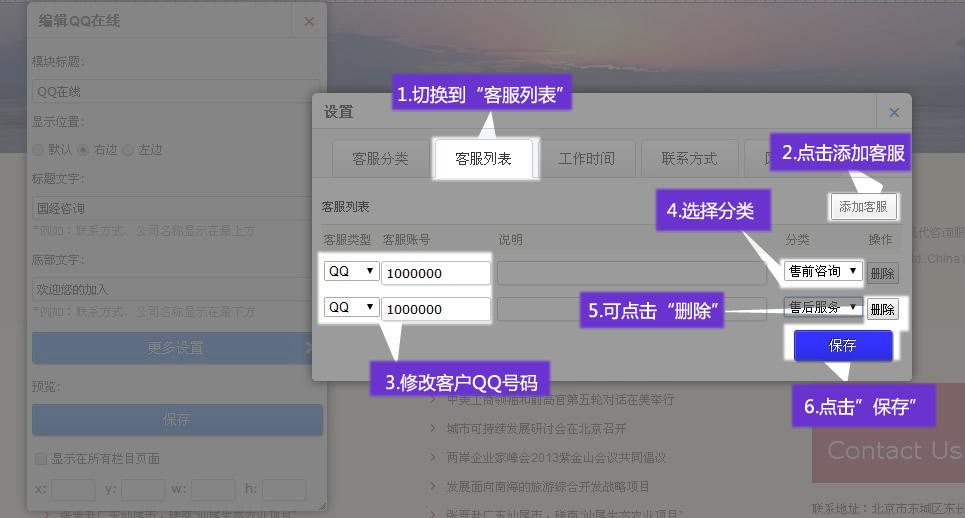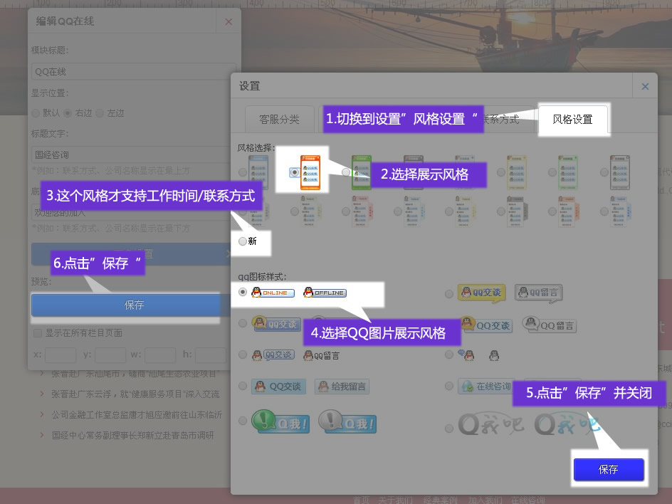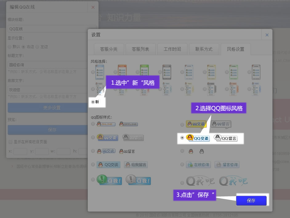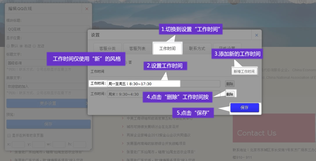 6. 添加“聯(lián)系方式”并保存,聯(lián)系方式僅使用于“新”風(fēng)格