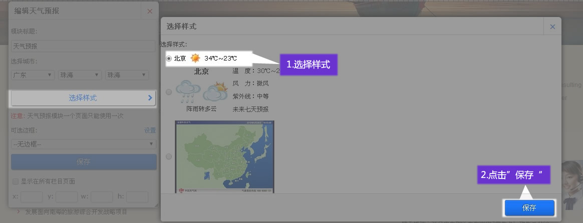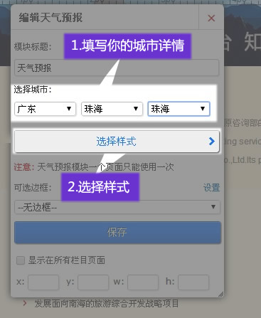 在適當(dāng)?shù)奈恢,添加?b>天氣預(yù)報(bào)”模塊