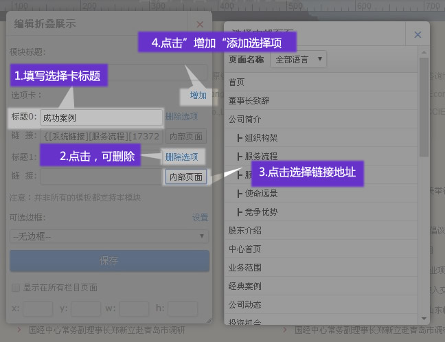 2. 選擇折疊模塊跳轉(zhuǎn)鏈接
