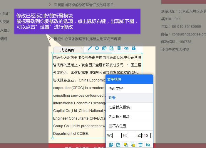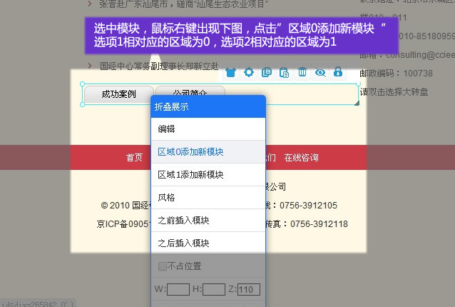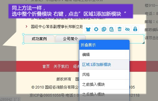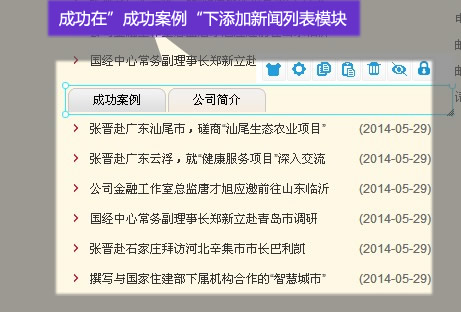6. 在相對(duì)應(yīng)的選項(xiàng)下添加模塊(公司簡(jiǎn)介下添加)